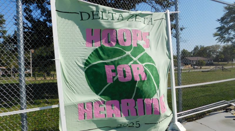 Teams created for the Hoops for Hearing event play against each other Oct. 4 in Truman’s Basketball Court in the South Field.. Delta Zeta hosted the event, as a way to raise funds for hearing loss.