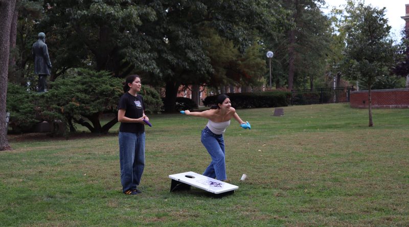 Juvia Duran tosses a bean bag Oct. 6 2025 at the Pumpkin Party hosted by the Student Activites Board. The SAB