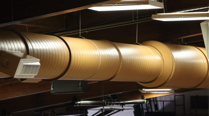 Painted air ducts hang from the ceiling of Pershing Arena. Before this summer, the gym did not have visible ducts.