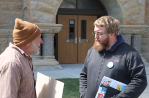 Corey Luebbering is a resident of Kirksville who was campaigning for his run at district three of the Missouri House during the protest. Luebbering’s campaign is focused on protecting the power of the vote in Missouri after ballot issues Proposition A and Amendment Three passed in 2024 but were overturned by the Missouri Legislature. Luebbering said he and Truman State University’s President, Sue Thomas, would also be having a meeting to discuss the potential change in how higher education is funded after the spending bill that would cut the University’s funding by 40%.