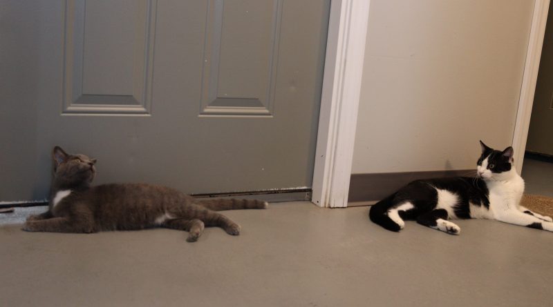 Cats named Fester and Midnight from Adair County Humane Society relax. The shelter houses various dogs and cats who were once strays.