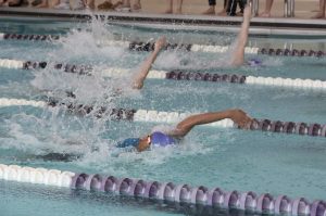 Parents show support during the senior night swim meet.