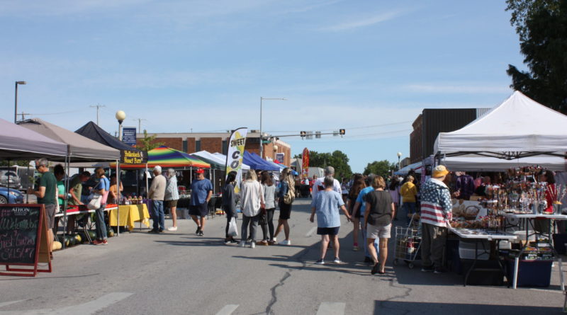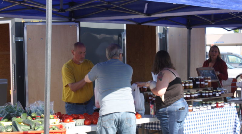 Vendors sell their products at the farmers’ market. The market ends in October with the Red Barn Festival.